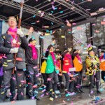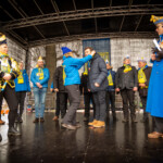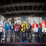 Der zwischenzeitlich immer wieder vorkommende leichte Schneefall konnte der guten Laune unseres stetig wachsenden Publikums jedoch keinen Abbruch tun. Den Anfang machten die Benrather Schlossnarren mit ihrem Schlossgrafenpaar Jochen & Sylvia (mittlerweile seit 3 Jahren im Amt) und der erst kürzlich ins Leben gerufenen Kindertanzgarde Schlosssternchen, die einen grandiosen Start hinlegten. Nachdem wir im Anschluss daran mit dem Schlossgrafenpaar die Benrather Lieblingsfarbe „ro-ro-rosa“ beschunkeln und besingen durften, erwartete uns bereits das nächste Highlight: