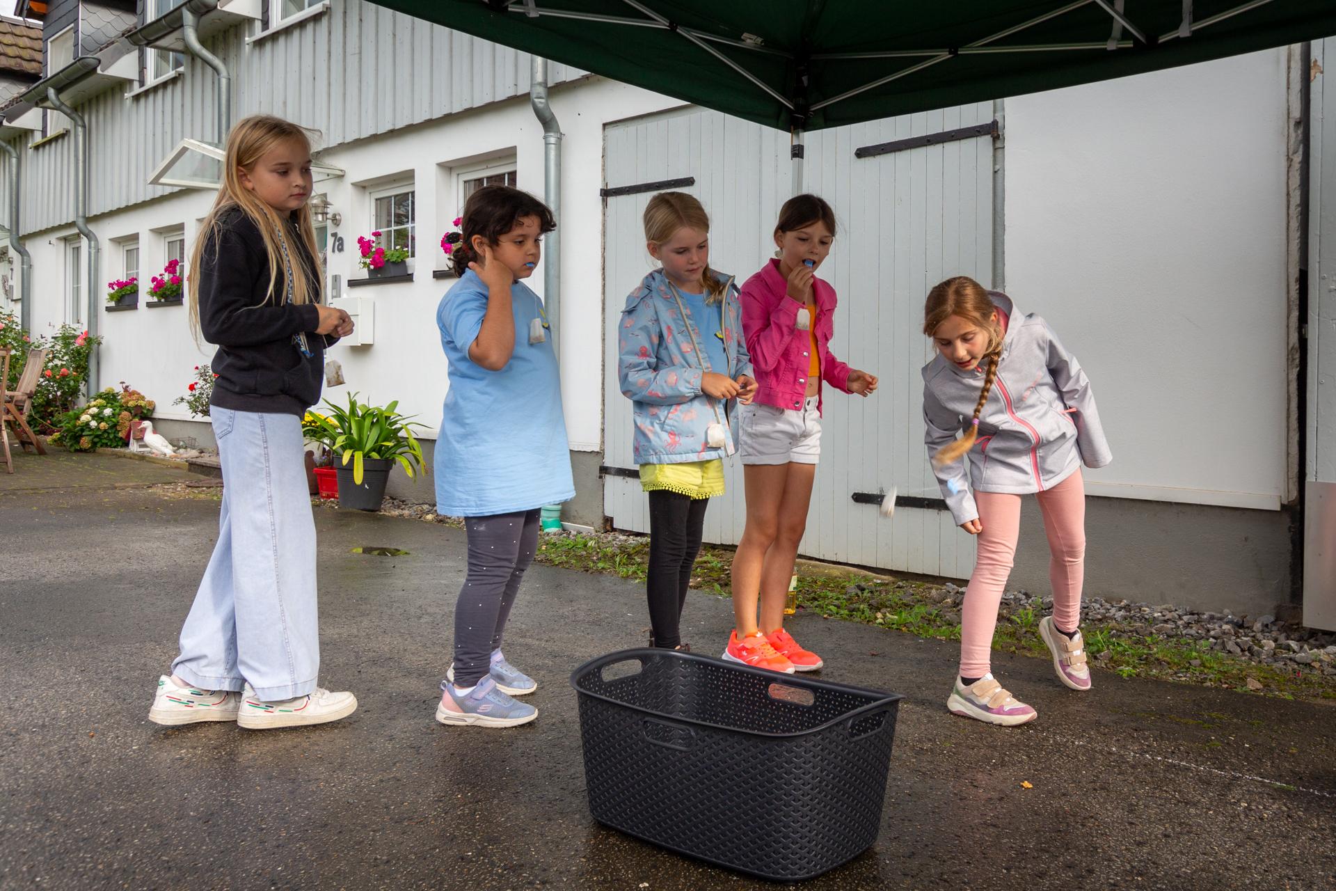 Für die Sternchen waren die „Angerlympics“ – ein kleiner Wettbewerb – vorbereitet worden, die aufgrund der nassen Gegebenheiten kurzerhand so umdisponiert wurden, dass die einzelnen Stationen im Schuppen oder unter Pavillons stattfinden konnten.