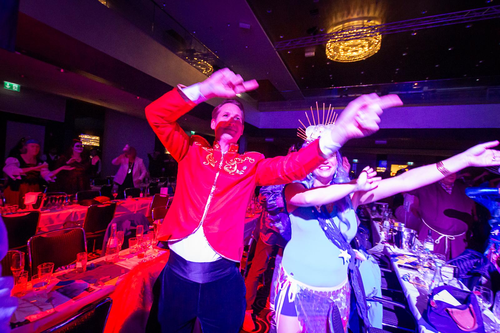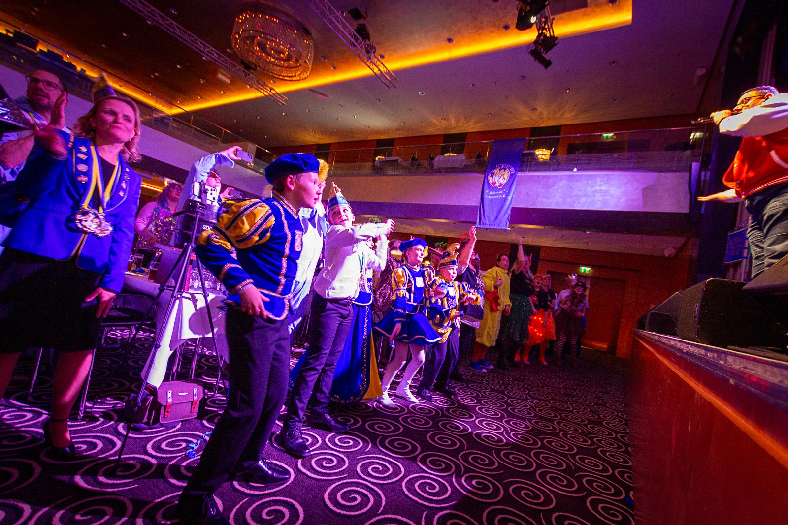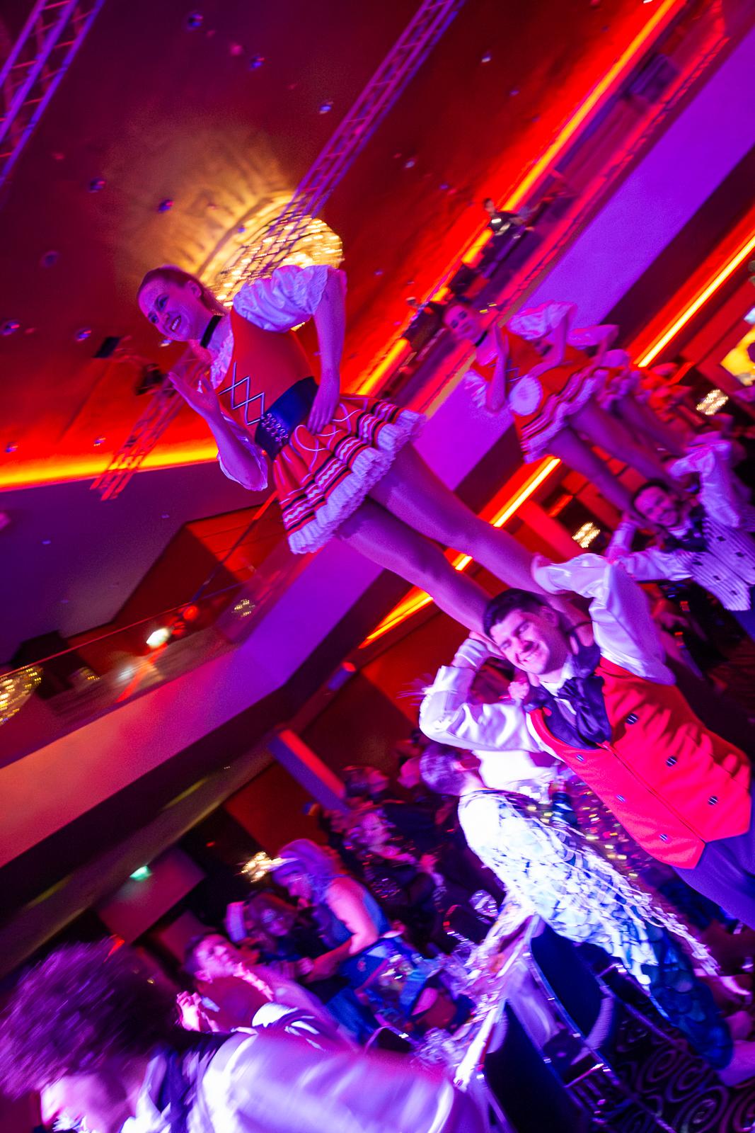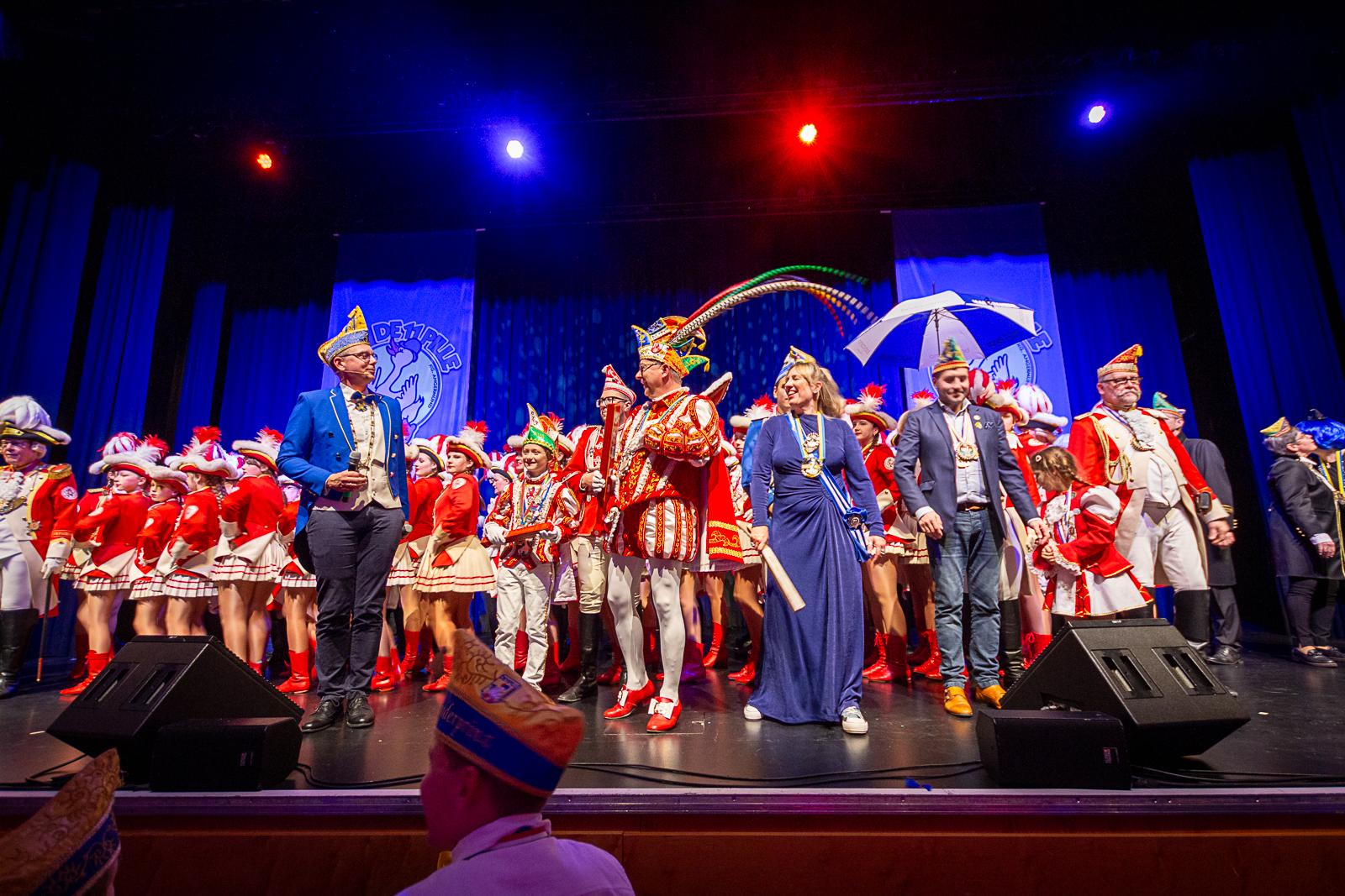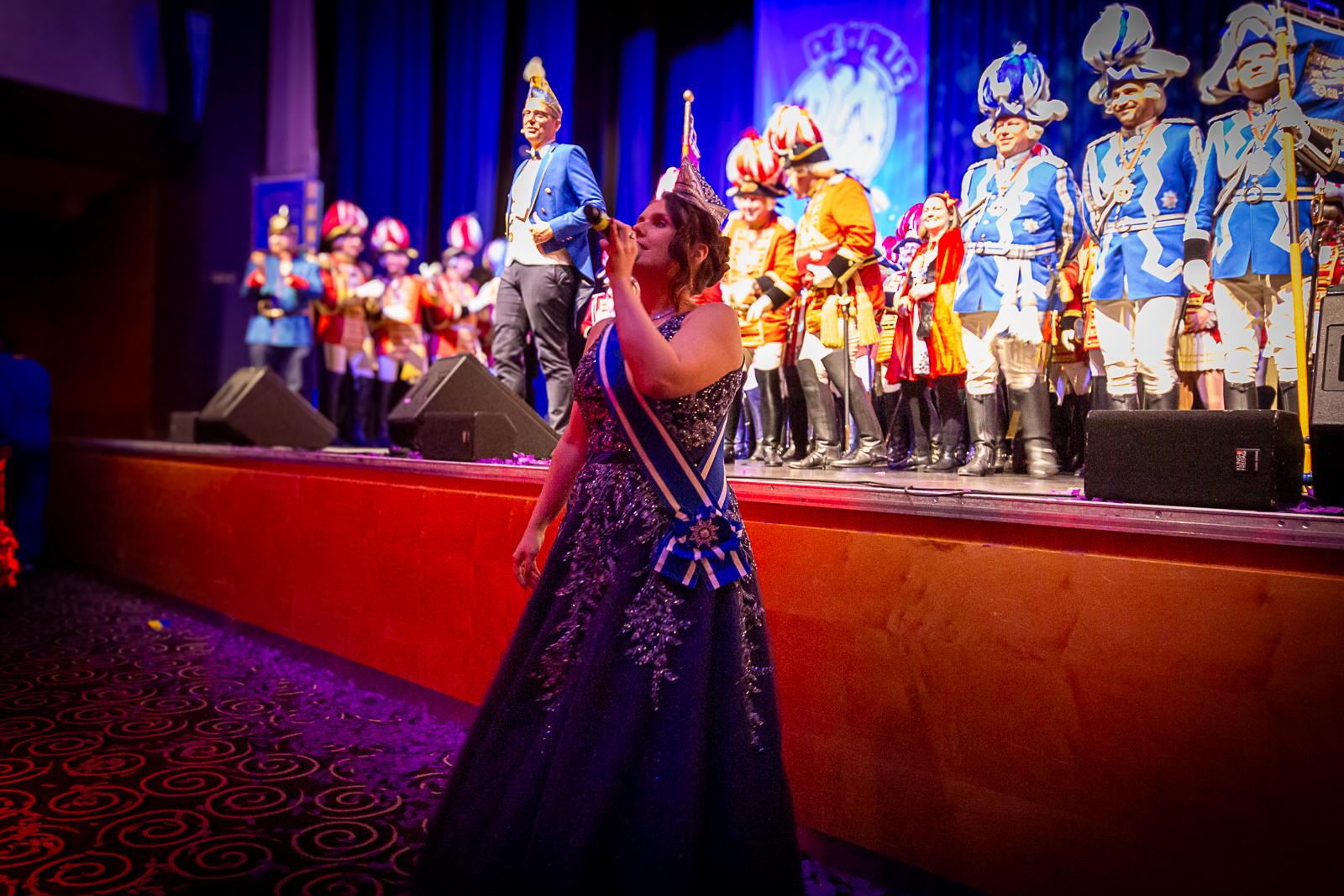 Spät am Abend wurde es nochmal artistisch: Die Kammerkätzchen und Kammerdiener aus Köln zeigten Tanzsport auf höchstem Niveau. Dann wurde es staatshaft: Begleitet von unserem Schutzmann und der Prinzengarde Rot-Weiss zog das Düsseldorfer Prinzenpaar ein. In diesem feierlichen Rahmen wurden noch Orden an den Chef-Adjutanten und die Vertreter des CC verliehen – Ehre, wem Ehre gebührt!