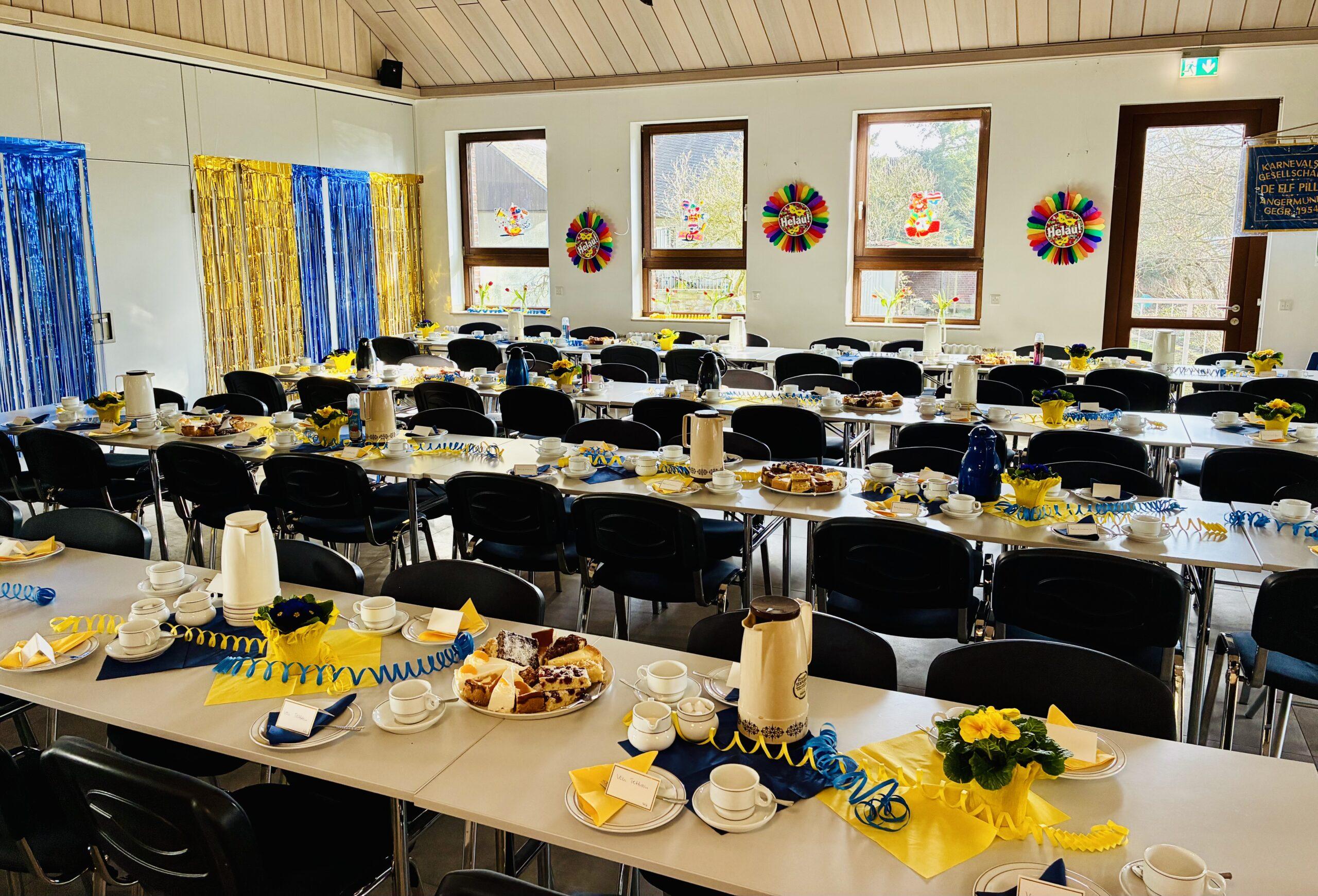 Am vergangenen Sonntagnachmittag verwandelte sich das Katholische Pfarrheim St. Agnes in einen blau-gelben Karnevalssaal. Wir hatten zum traditionellen Karnevalistischen Kaffeeklatsch geladen und die Angermunder Jecken kamen in bester Stimmung zusammen.