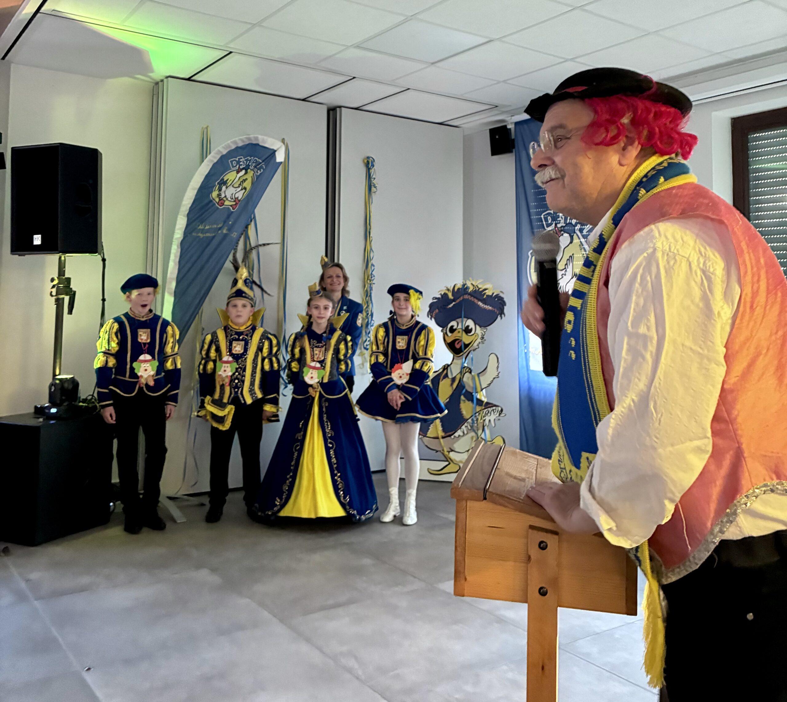 Statt des aktuellen Prinzenpaares, das bekanntlich in dieser Session fehlte, füllte sich die Bühne zum Abschluss mit geballter Tradition: Ehemalige Prinzenpaare, Venetien und Kinder-Crewmitglieder aus vielen Jahrzehnten kamen zusammen. Beim gemeinsamen Ententanz und dem traditionellen Pilleschlager ließen wir den Nachmittag gewohnt gut gelaunt ausklingen.
