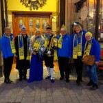 Nach dem Auftritt tauschten die Prinzenpaare reichlich Orden aus. Wer weiß, was beim Bützen immer in die Ohren der jeweiligen Ordensempfänger geflüstert wurde. Leider mussten wir schon viel zu früh wieder abreisen, da zum letzten Mal die vom Prinzenpaar organisierten Tanzstunden stattfanden.